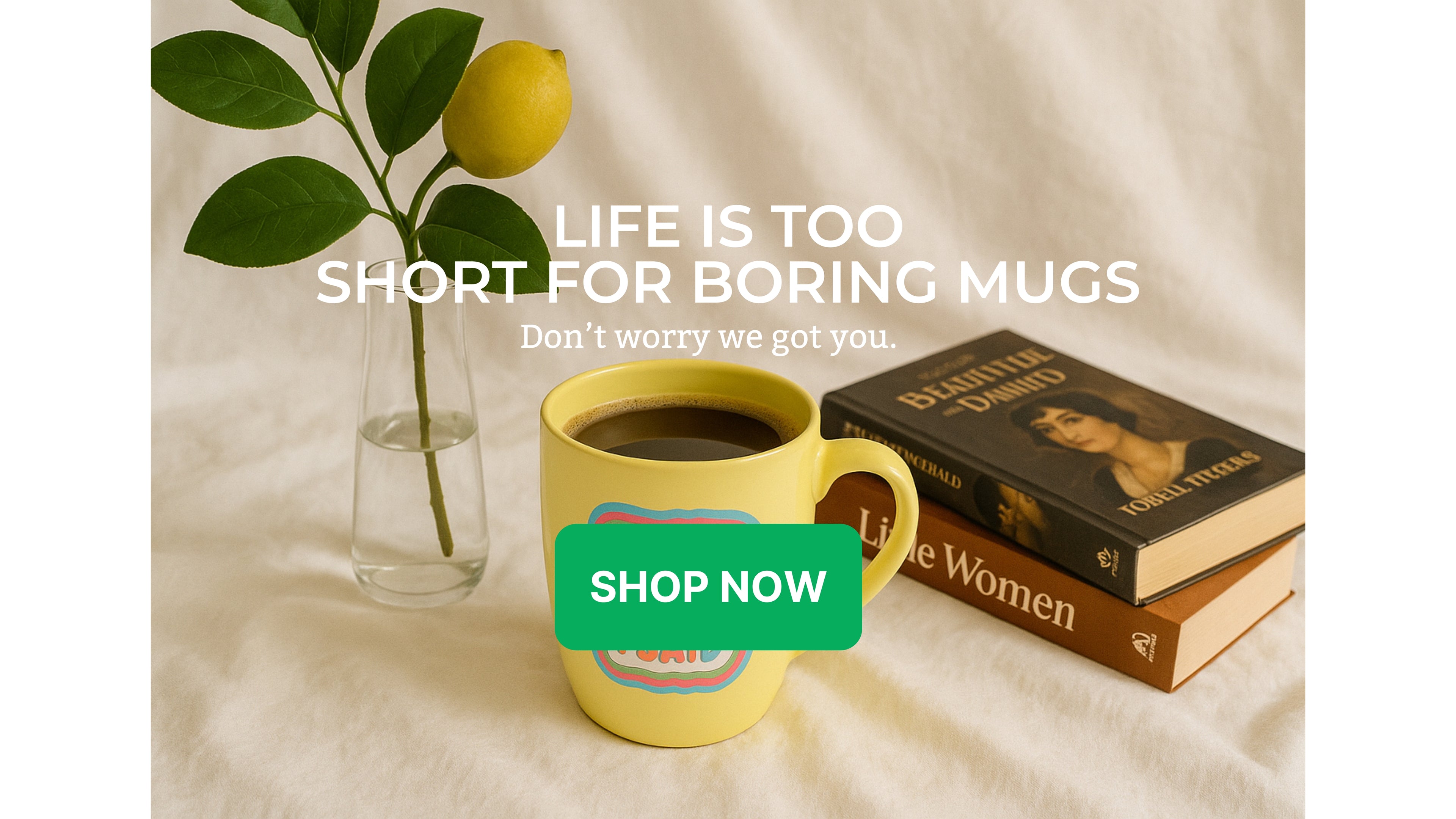 We put our hearts (and plenty of coffee-fueled brainstorming sessions) into designing mugs that are affordable, fun, and truly unique. Every design has a story, every drop has a vibe, and every mug is made to make you smile.